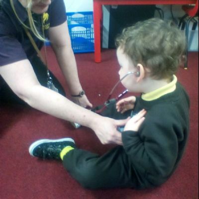 We had a visit from Dr Perry to tell us how important it is to eat healthy, exercise and sleep to enable us to grow. Dr Perry left us her stethoscope so that we could listen to our heartbeats before and after exercise. The children also looked for other signs of change on their bodies after exercise, some of the things the children noticed they were hotter and their breathing was faster.