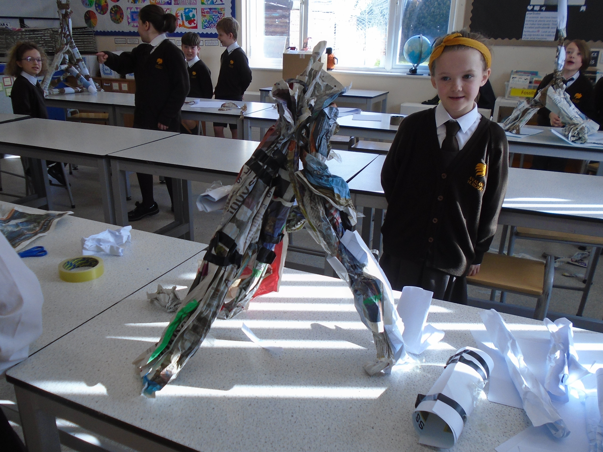 For our challenge, we used a range of materials, that are thrown away and usually end up on our beaches and streets, to make a garment out of. Year 3 used their creative thinking to cut, stick and tie these materials together.