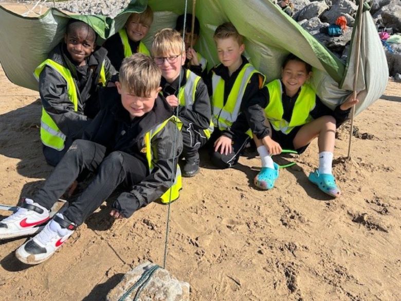 Year 4 had the perfect weather for their first outing to Beach School this half term. The children’s first challenge was to flip the piece of Tarpaulin that they were standing on the other way around without stepping off of it! The pictures show who the “last men standing” were.